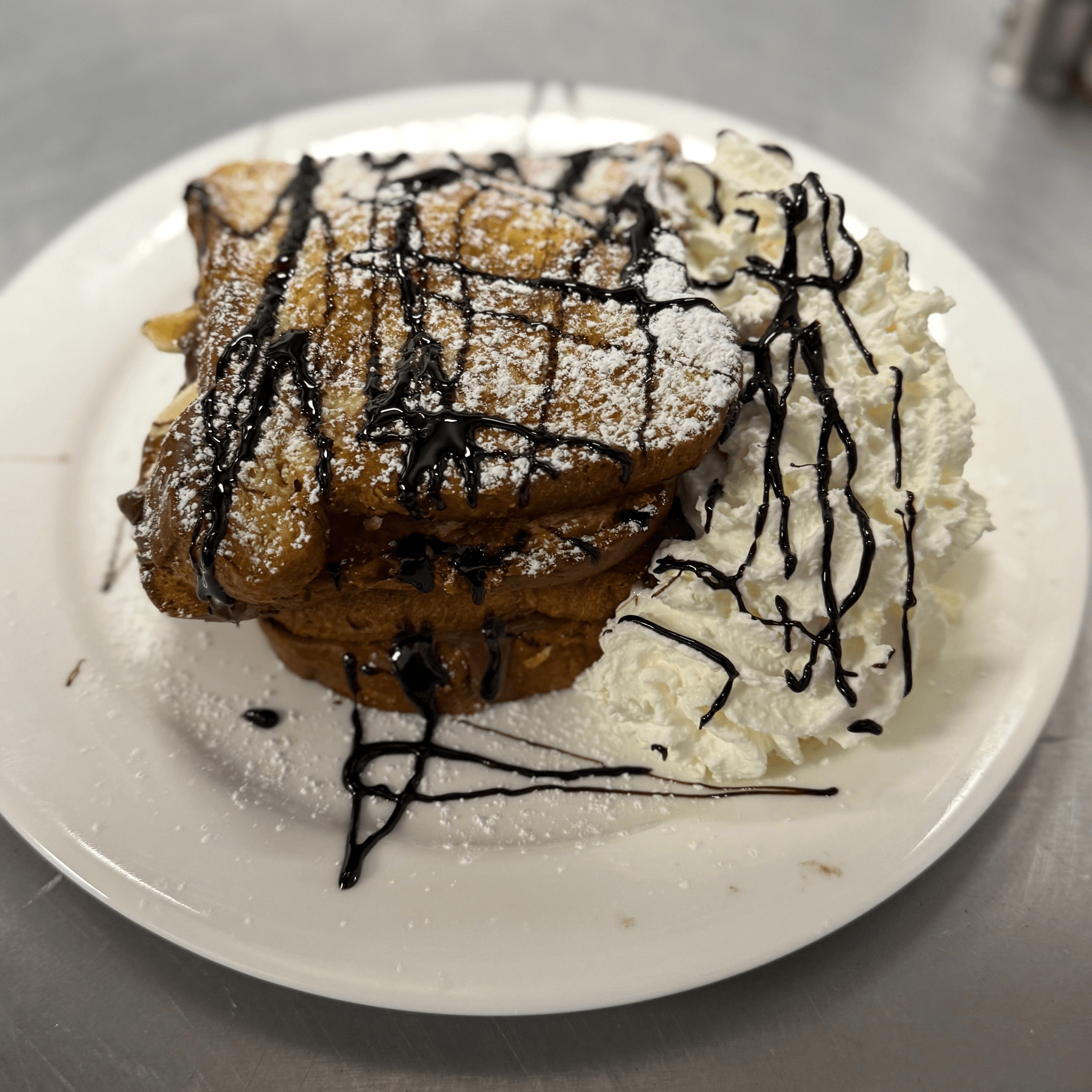 Pulled pork, caramelized onions, Monterey jack, spicy mayo, country white bread with French fries