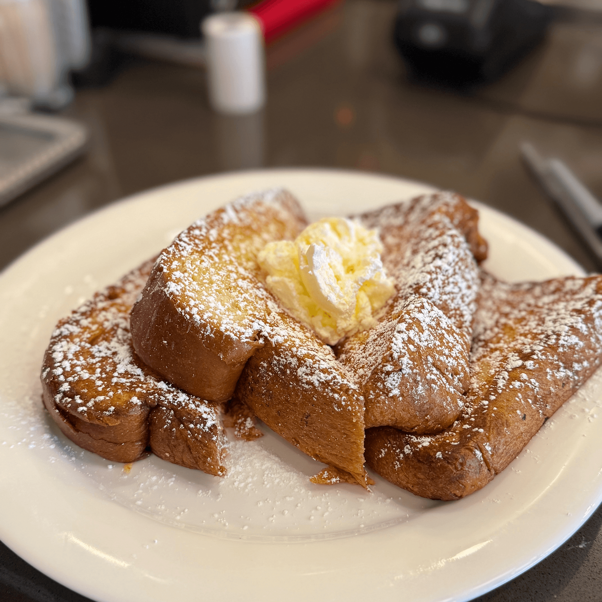 Eggs over, maple bacon, pepper jack cheese, hash browns, on buttered focaccia